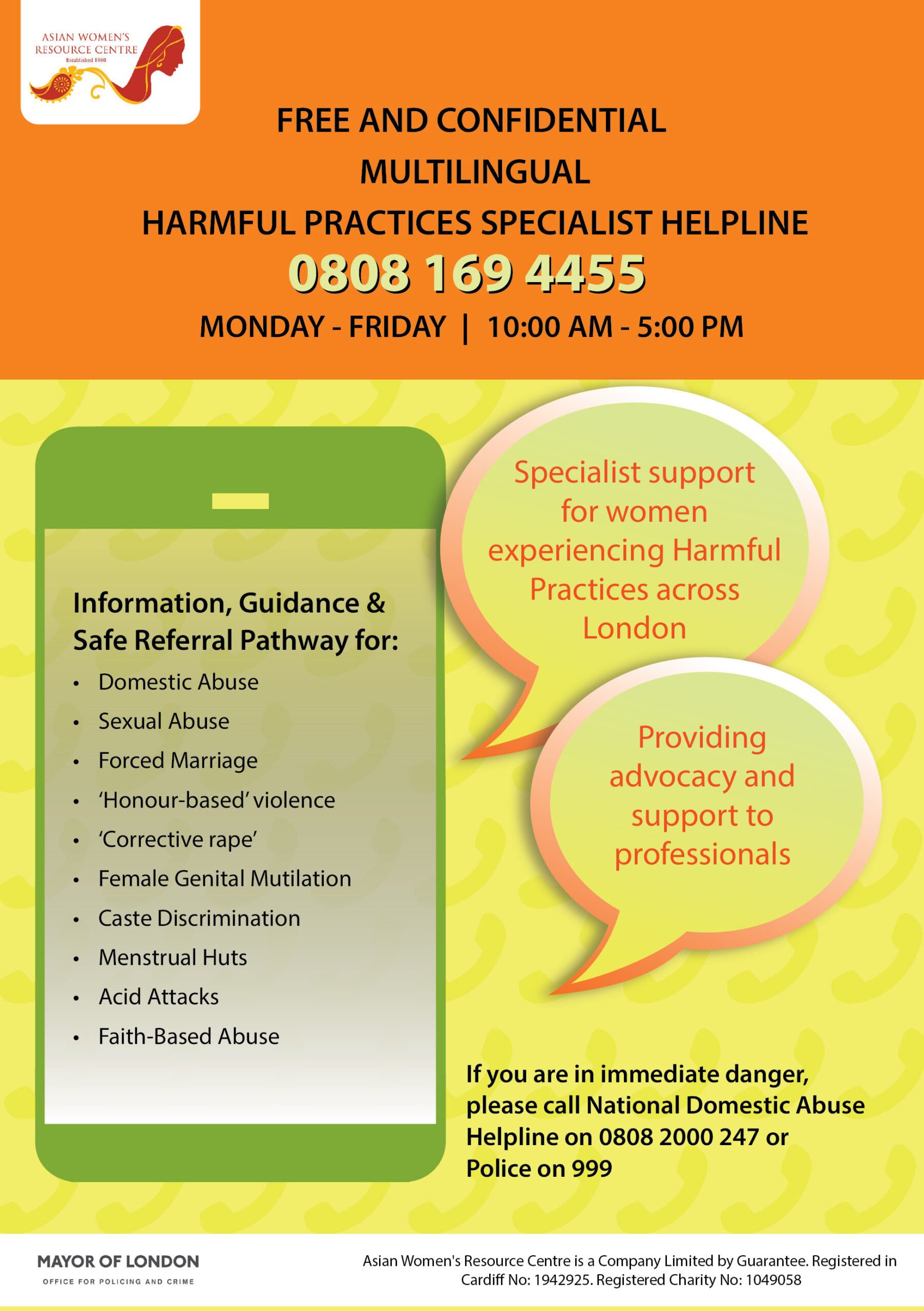 Specialist support for women experiencing harmful practices, and advice for professionals, across